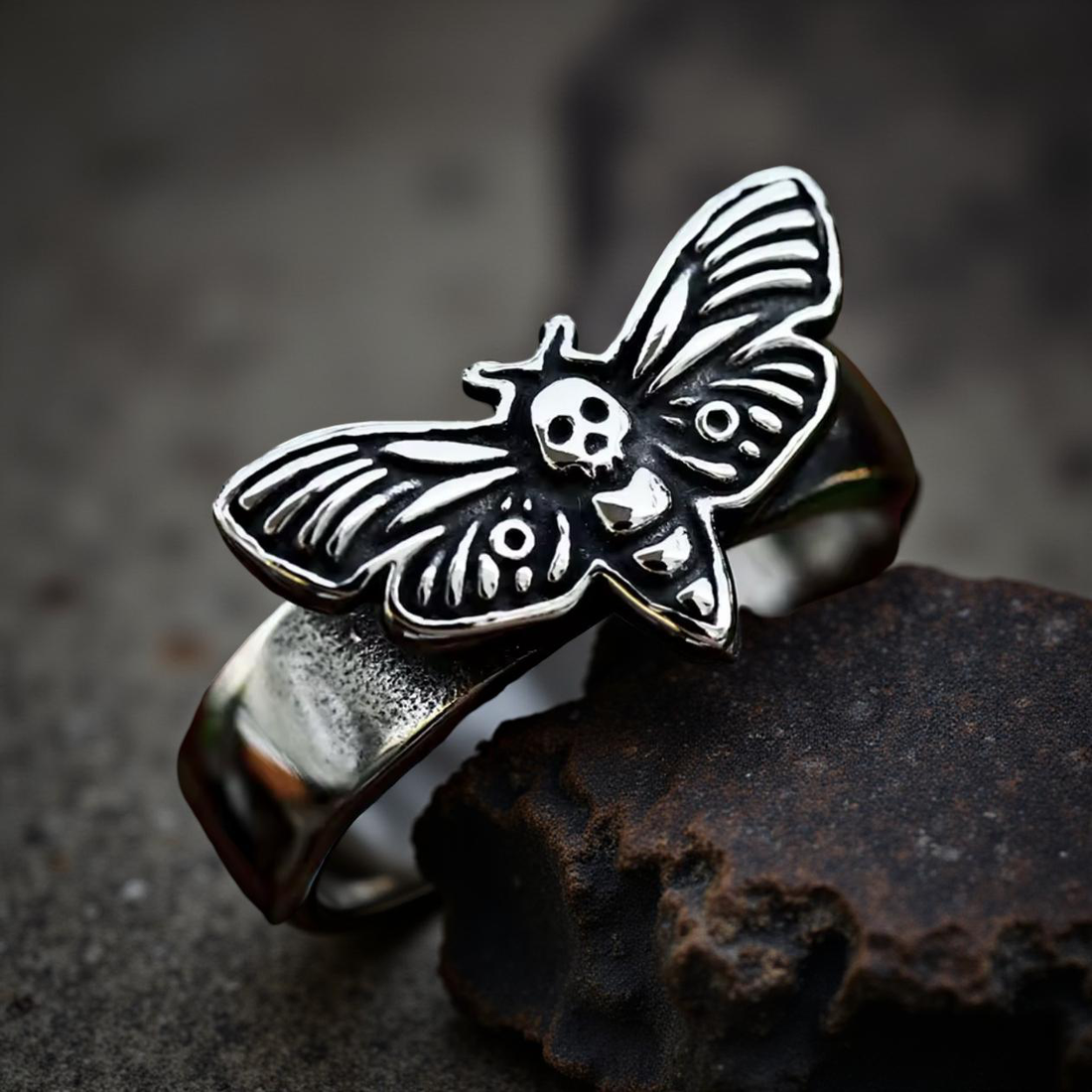 Death Moth Skull Ring – Acherontia Lachesis Stainless Steel Cute Gothic Ring