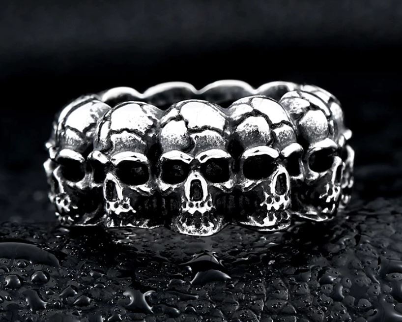 Graveyard Skull Band Ring – Stainless Steel Skull Ring (Thick or Thin Band)