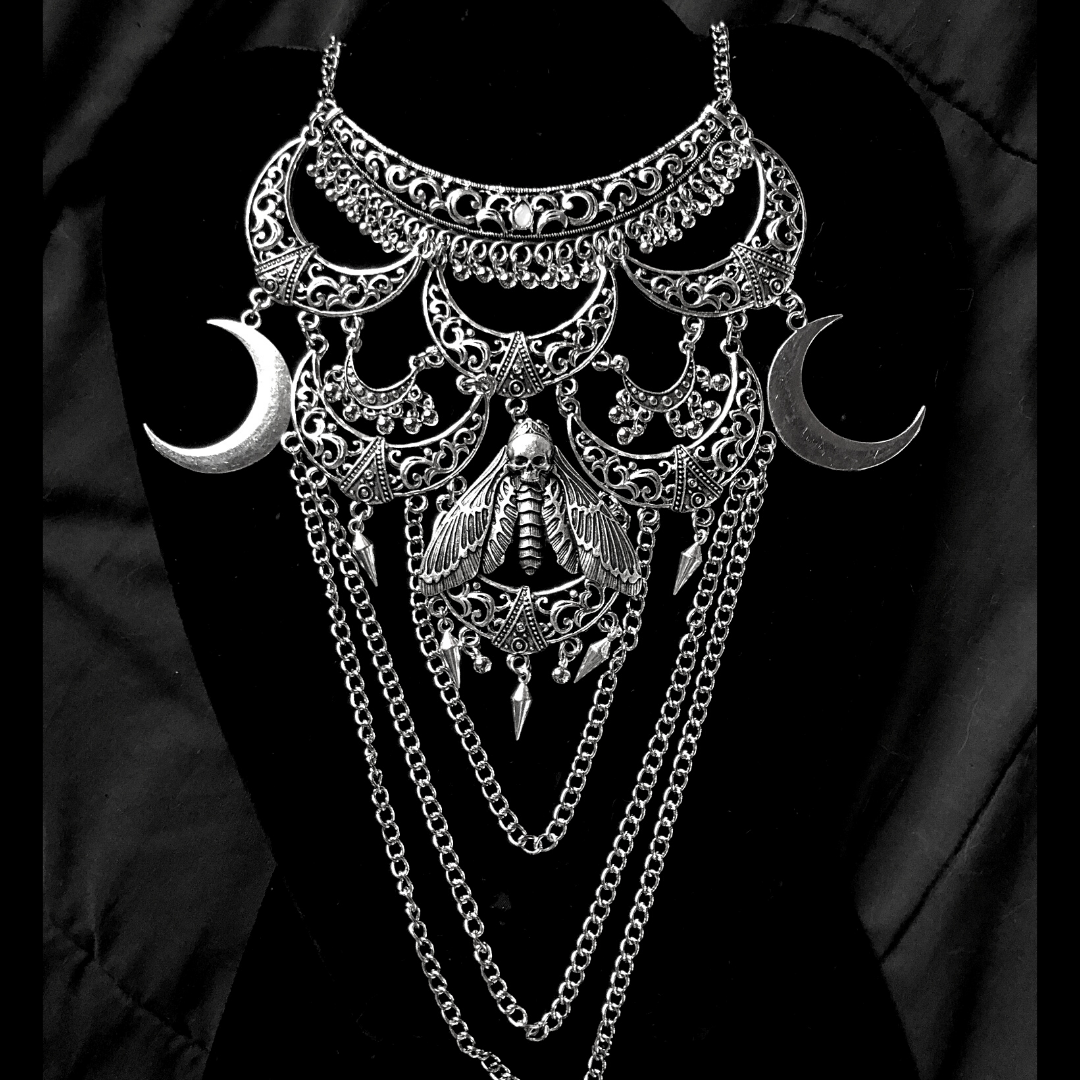 Deathmoth and moon layered necklace is an enchanting and unique piece of fantasy jewelry that is sure to leave a lasting impression. With its intricate design, high-quality craftsmanship, and versatile styling options, it's a piece that you won't want to miss out on.