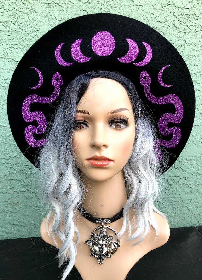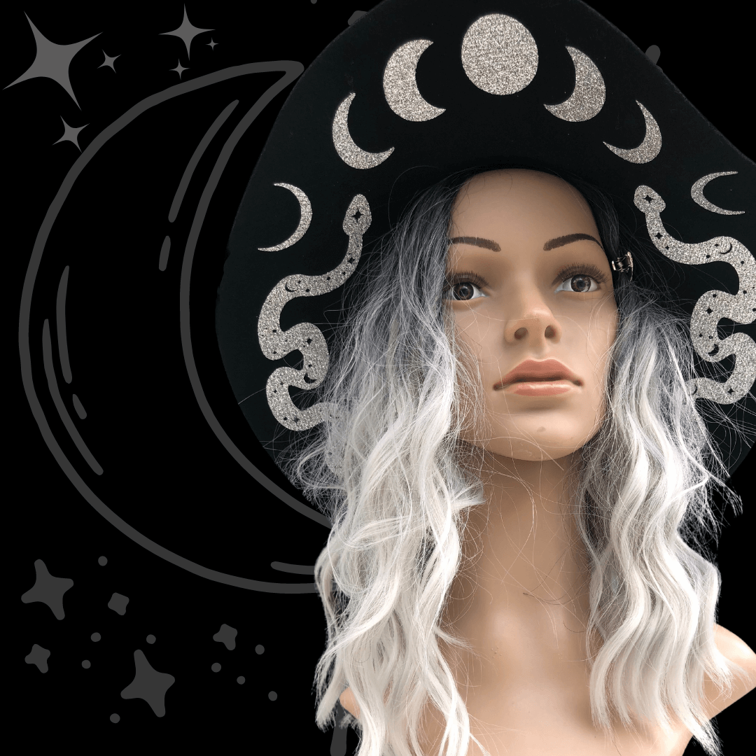 Floppy Fedora Moon Phases & Snakes Hats | Witchy Spooky hats Moon Phases Hat | Felt Hat | Women's Felt Hat | Festival Fedora Hat