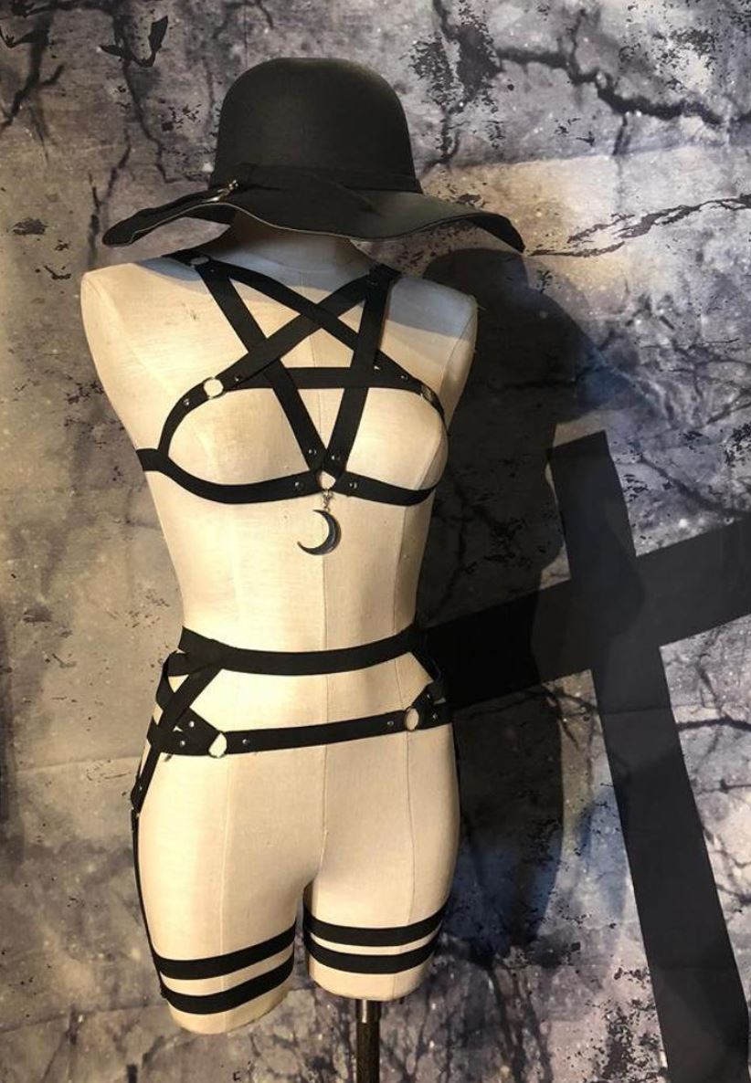Perfect for special occasions or intimate moments, this Sexy Pentagram Harness is a must-have addition to your lingerie collection. It is sure to turn heads and leave a lasting impression, making you feel confident, sexy, and empowered. Order yours today and experience the magic of the pentagram for yourself!